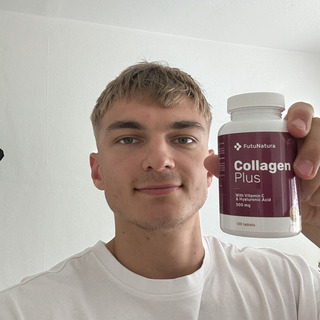 Proto jsme ve FutuNatura navrhli kolagen ve formě tablet, které jsou primárně určeny na podporu pokožky, vlasů a nehtů. Pro ještě lepší podporu je kolagen obohacen o vitamín C a kyselinu hyaluronovou.